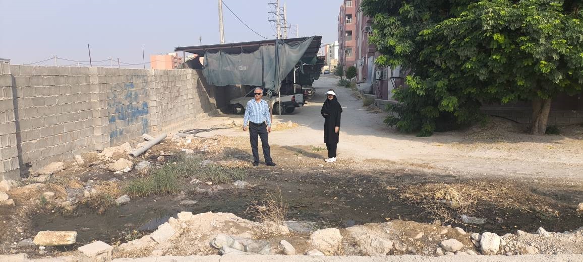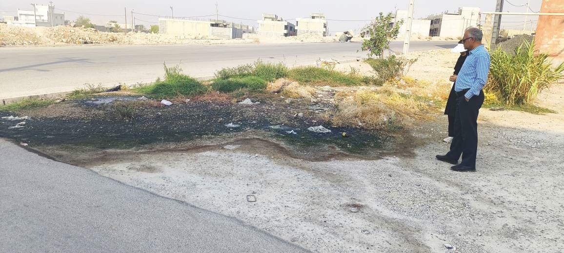 بازدید ضربتی کارشناسان بهداشت محیط از محل سرریز فاضلاب شهری مجتمع مسکن مهر شهر قیر