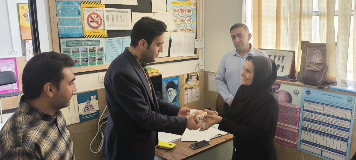 در پایان این بازدید، به پاس سالها تلاش صادقانه و به مناسبت این روز بزرگ و به رسم یادبود، هدیه ای از طرف شبکه بهداشت و درمان شهرستان، به بهورزان اهدا شد.